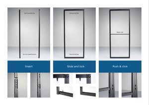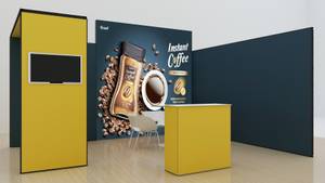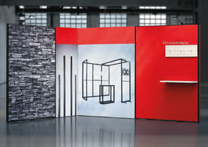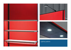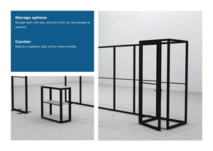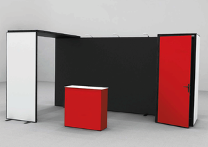 2 hauteurs 250/300cm + 1 paroi partiellement lumineuse + 1 arcade + 1 comptoir + 1 support d’écran